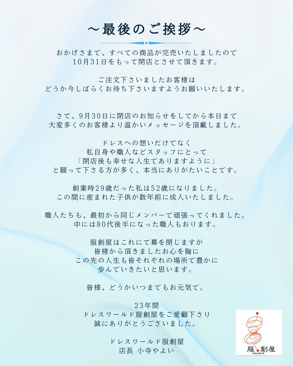 ドレスワールド服創屋では、個人情報保護を最優先に考えます。